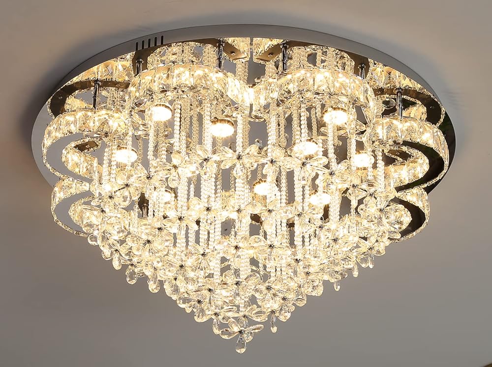 W23.6'' Modern LED Chandeliers for Dining Room Crystal Flush Mount Ceiling Light for Living Room Bedroom Interior Luxury Foyer Ceiling Light Dimmable 2700k 4500k 6000k