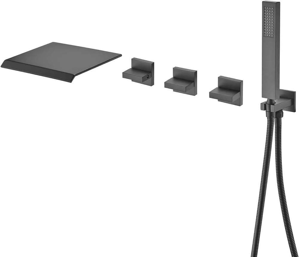 Wall Mount Waterfall Tub Filler Faucet with Hand Shower High Flow Matte Black Bathtub Faucet,SUMERAIN