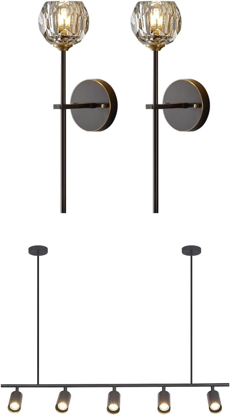 BOKT Crystal Wall Sconces Set of Two Black Sconces Industrial Ceiling Spot Lighting for Kitchen Living Room Hallway Bedroom