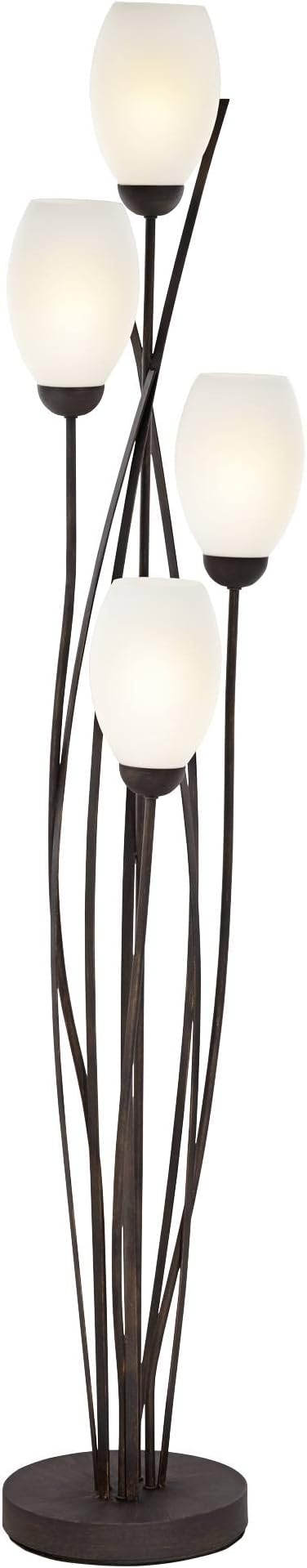 Franklin Iron Works Jareth Modern Tree Floor Lamp Standing with USB Charging Port 4-Light 73" Tall Ginger Black Metal White Glass Tulip for Living Room Reading House Bedroom Home Office