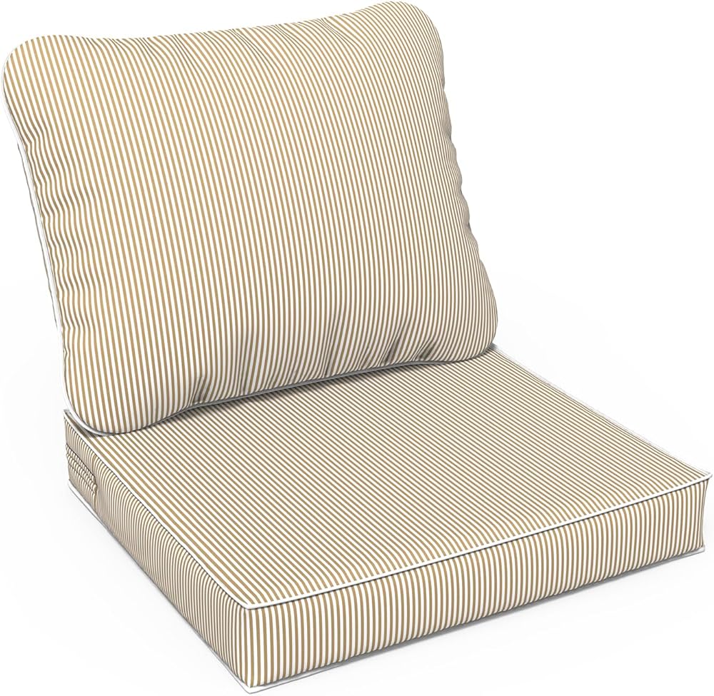 LVTXIII Outdoor Deep Seat Cushion Patio Seat and Back Cushion Set Seasonal Chair Cushion with Removable Cover and Adjustable Buckle for Home and Garden, 24"x24"x4", Strip Beige