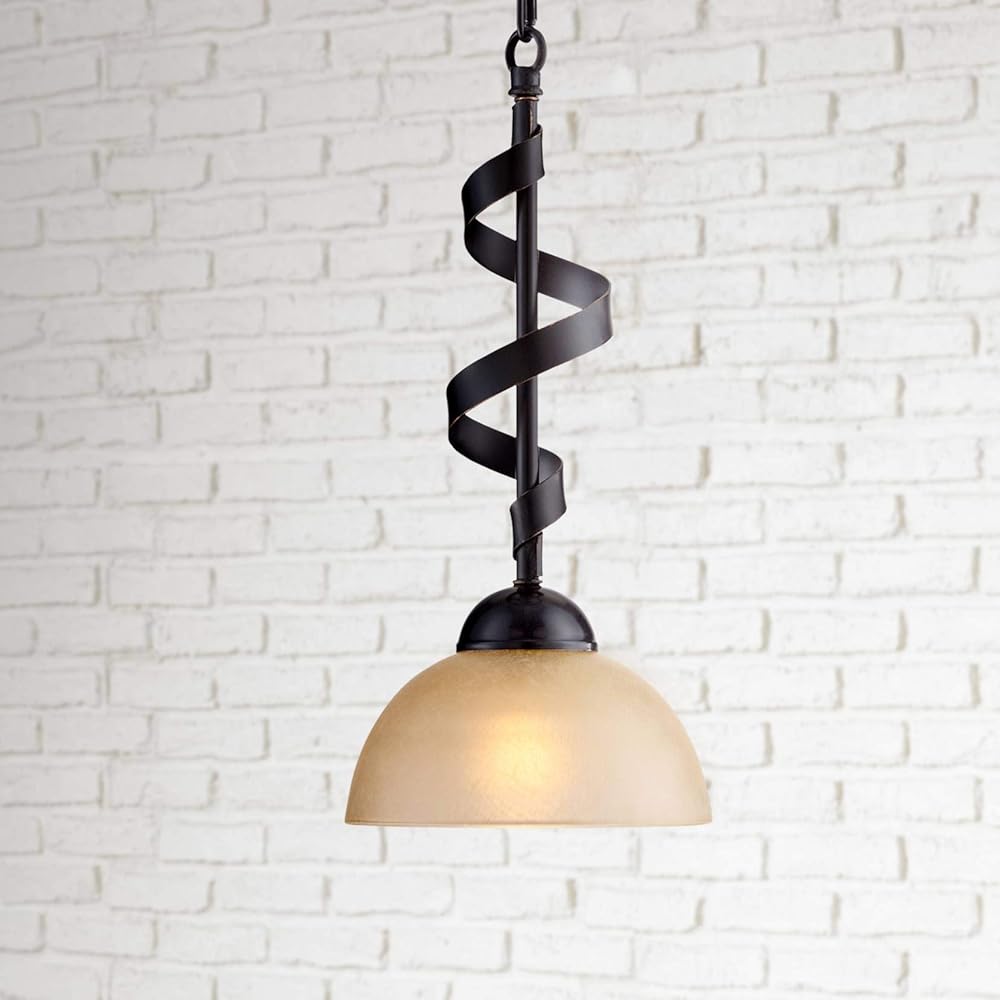 Franklin Iron Works Bronzeador Oil Rubbed Bronze Mini Pendant Light 7" Wide Farmhouse Industrial Rustic Amber Glass Bowl Shade for Dining Room Living House Foyer Kitchen Island Entryway Bedroom
