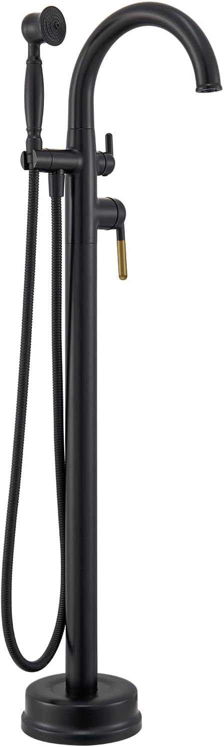 Freestanding Bathtub Faucet Black & Rose Gold Tub Filler High Flow 6.65GPM@60PSI Floor Mount Tub Faucets with Vintage Hand Shower