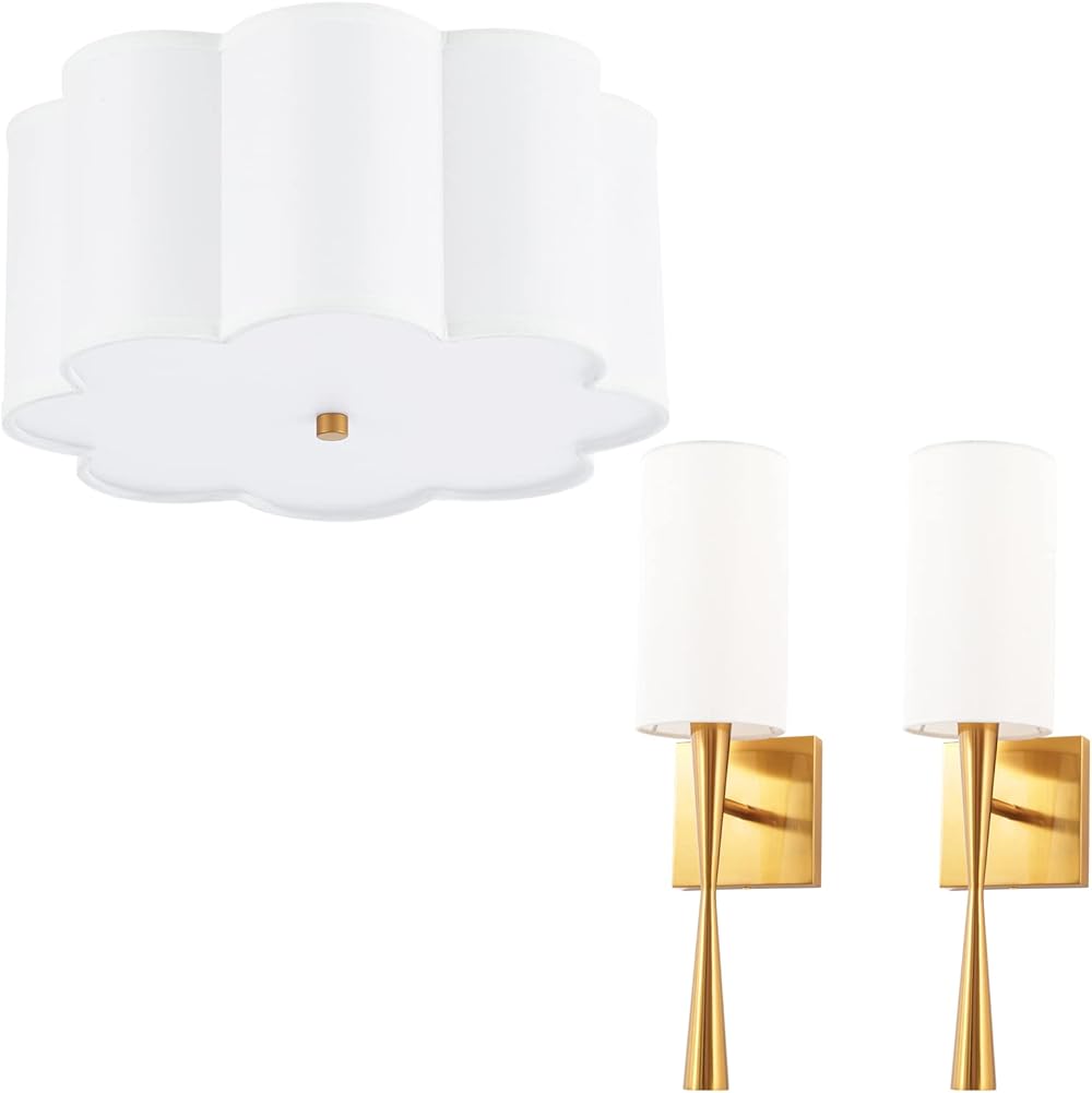 Item Flower-Shaped Fabric Drum Ceiling Light and Item Wall Sconce Set of 2 Bundle