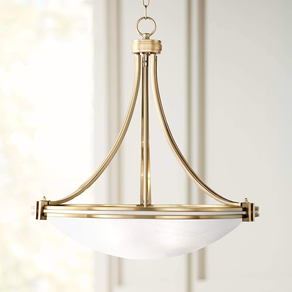 Possini Euro Design Deco Warm Brass Gold Bowl Small Pendant Chandelier Light Fixture 21 1/2" Wide Satin White Glass for Dining Room House Foyer Entryway Kitchen Bedroom Living Room High Ceilings