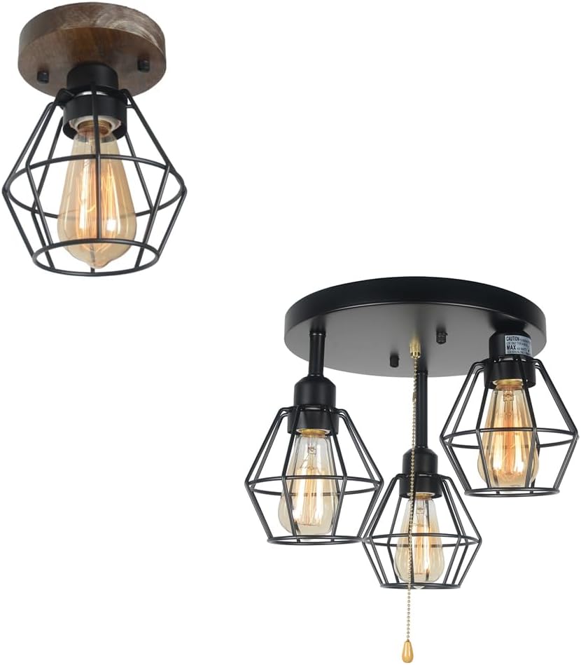 Industrial Metal Cage Ceiling Light Fixtures Bundle