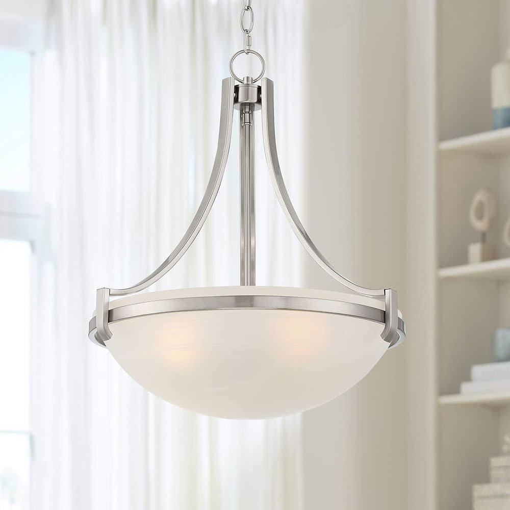 Regency Hill Mallot Brushed Nickel Silver Metal Pendant Chandelier 20" Wide Modern Frosted Glass Bowl Shade 4-Light Fixture for Dining Room House Foyer Entryway Kitchen Bedroom Living Room