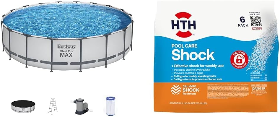 Bestway 18' x 48" Round Above Ground Pool Set with 1,000 GPH Pump, Ladder, Cover and HTH 6-Pack Swimming Pool Shock