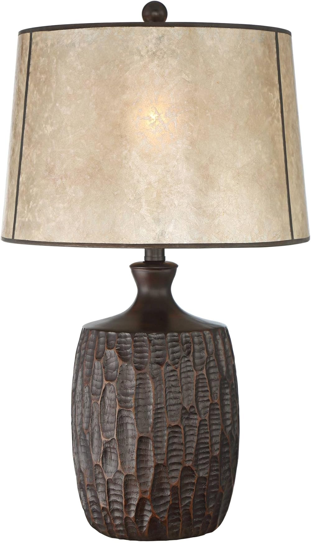 Franklin Iron Works Kelly 25 1/2" High Farmhouse Rustic Country Cottage Table Lamp USB Cord Dimmer Brown Single Mica Shade Living Room Charging Bedroom Bedside Nightstand House (Colors May Vary)