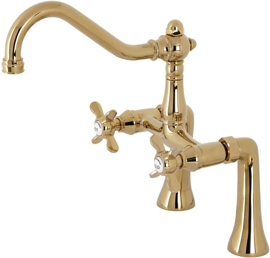Kingston Brass KS3232BEX Essex 7-Inch Center Deck Mount Clawfoot Tub Faucet, Polished Brass, 8-1/2 inch in Spout Reach