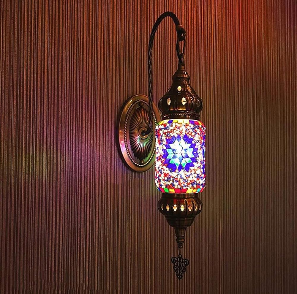 Turkish Mosaic Gooseneck Sconce Wall Lamp Bohemian Lantern Wall Lights Moroccan Handmade Glass Bedside Lamp for Living Room Bedroom Hallway Balcony Cafe Bar (Color : A)