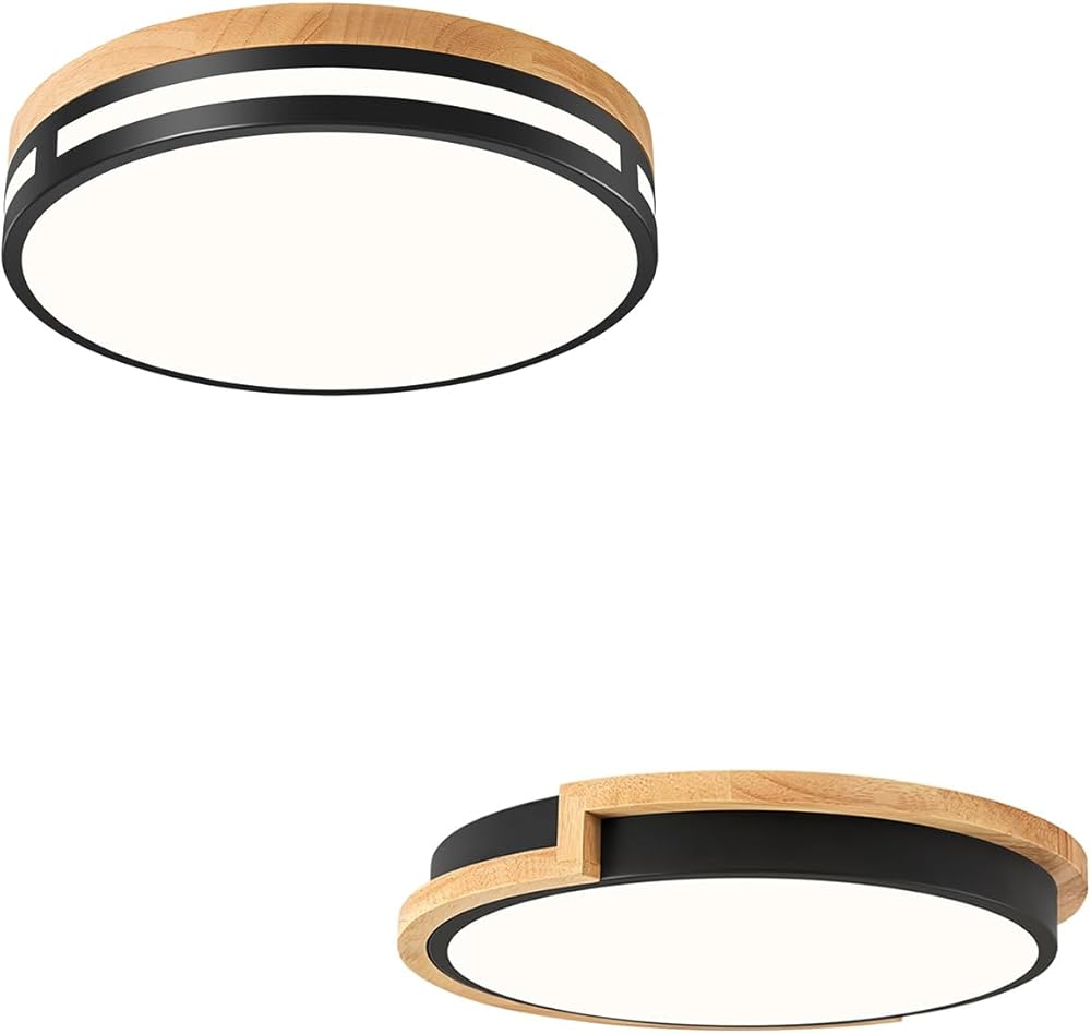Dimmable Wood LED Flush Mount Ceiling Lights & Modern Wood Ceiling Light Fxiture, Black LED Flush Mount Ceiling Light