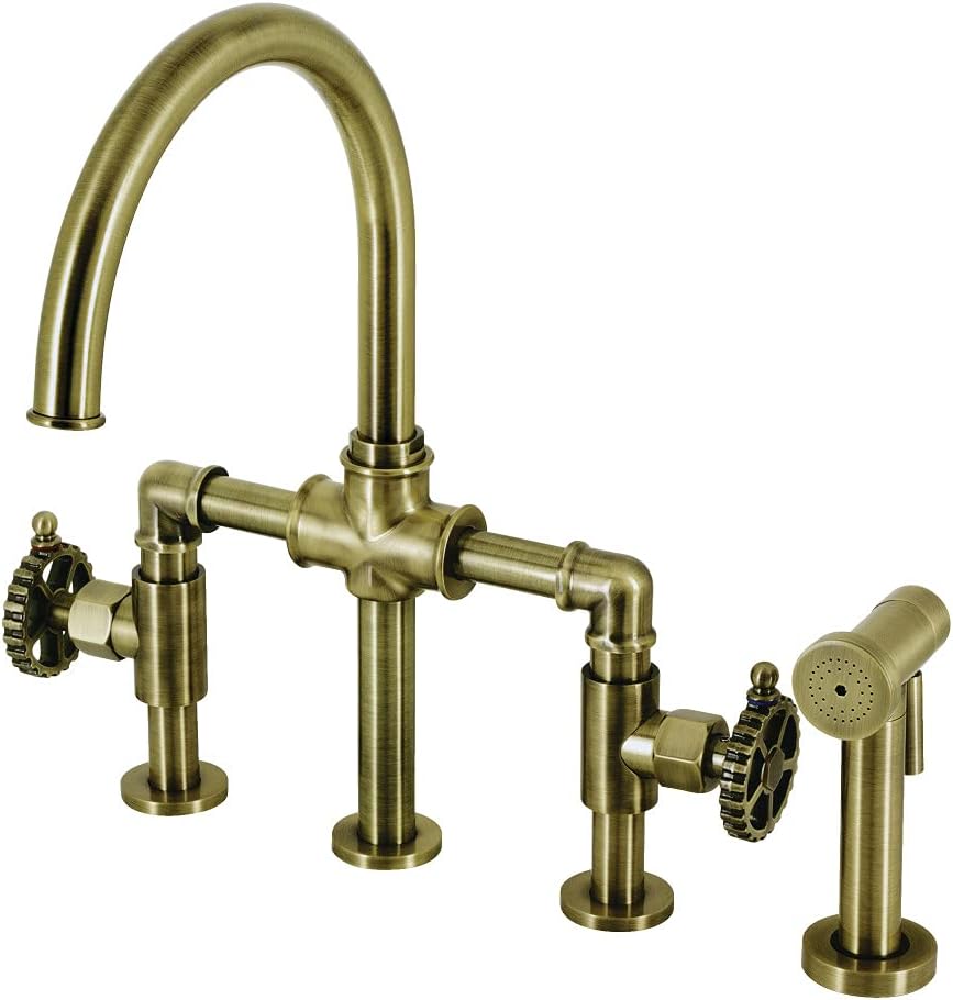 Kingston Brass KS2333CG Fuller Bridge Kitchen Faucet, Antique Brass