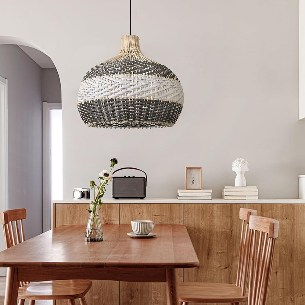 Arturesthome Woven Pendant Light, Grey White Rattan Basket Lampshade Coastal Hanging Lighting Fixture, Adjustable Vintage Farmhouse Chandelier Lamp Shade for Kitchen Island Dining Room