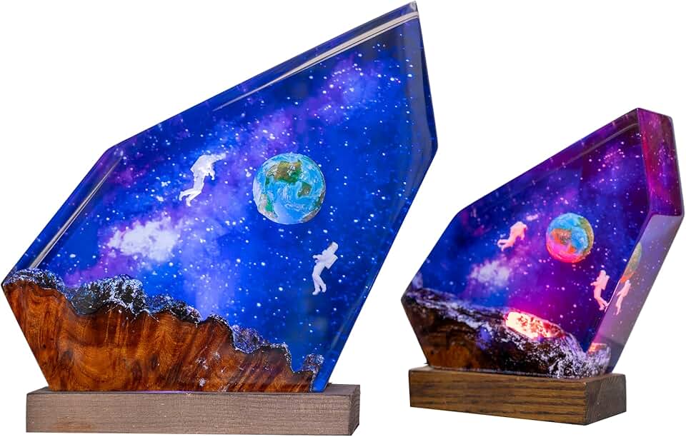 Astronauts and Earth Lamp, Universe Lamp, Space Epoxy Resin Night Lights, Galaxy Resin Lamp, Valentine Gift, Winter Gift, Housewarming Gift, Custom Epoxy Lamp, Personalized Night Light (10x6 inch)