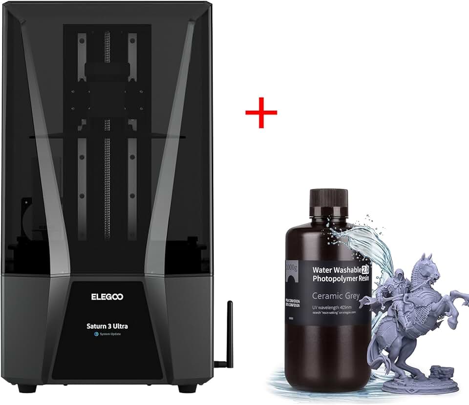 Saturn 3 Ultra Resin 3D Printer and ELEGOO Water Washable 3D Printer Resin 2.0 Ceramic Grey 1000g