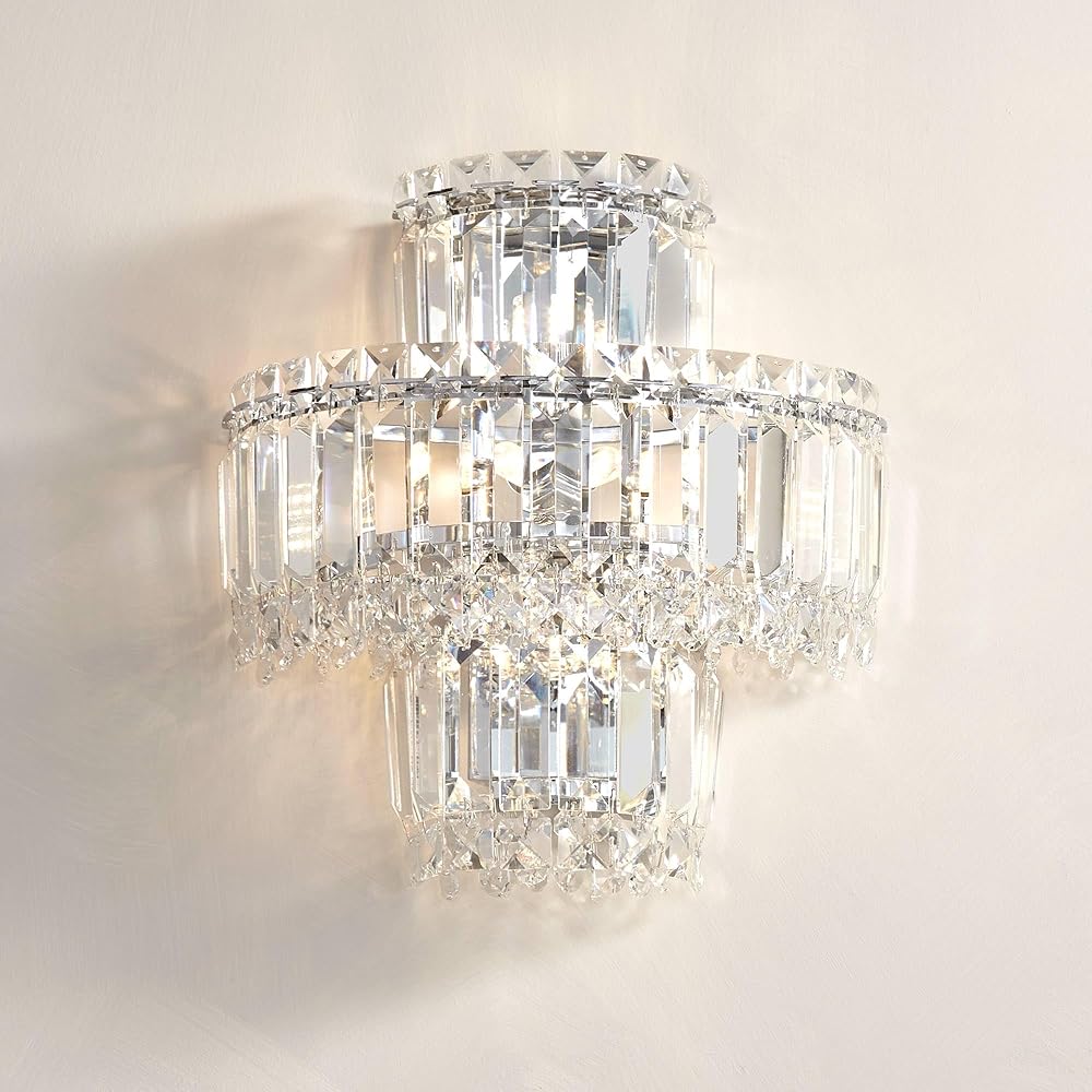 Vienna Full Spectrum Magnificence Mid Century Modern Wall Light Sconce Chrome Silver Hardwired 11 1/2" Wide Fixture Tiered Clear Crystal for Bathroom Vanity Mirror House Home Hallway Room Decor