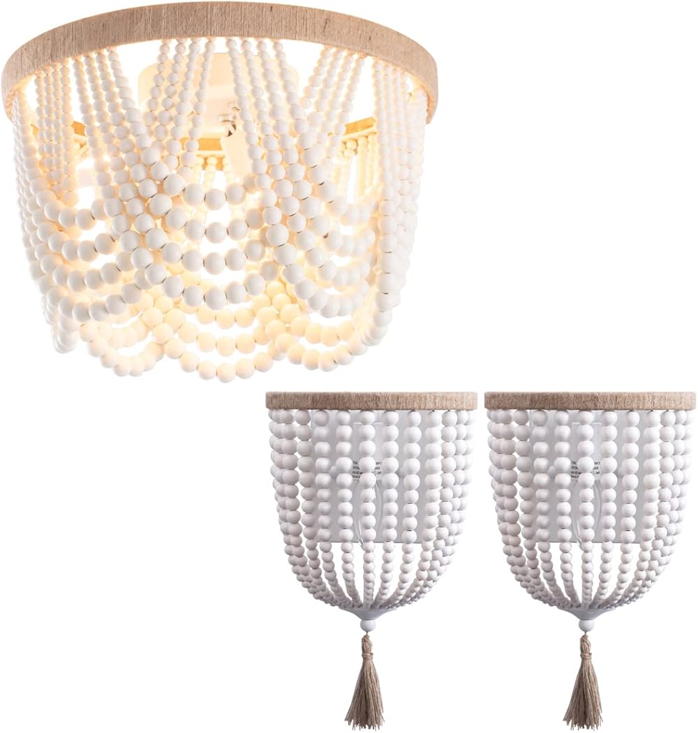 Item Bohemia Wood Beaded Flush Mount Ceiling Light and Item Wall Wood Beaded Wall Sconces Bundle