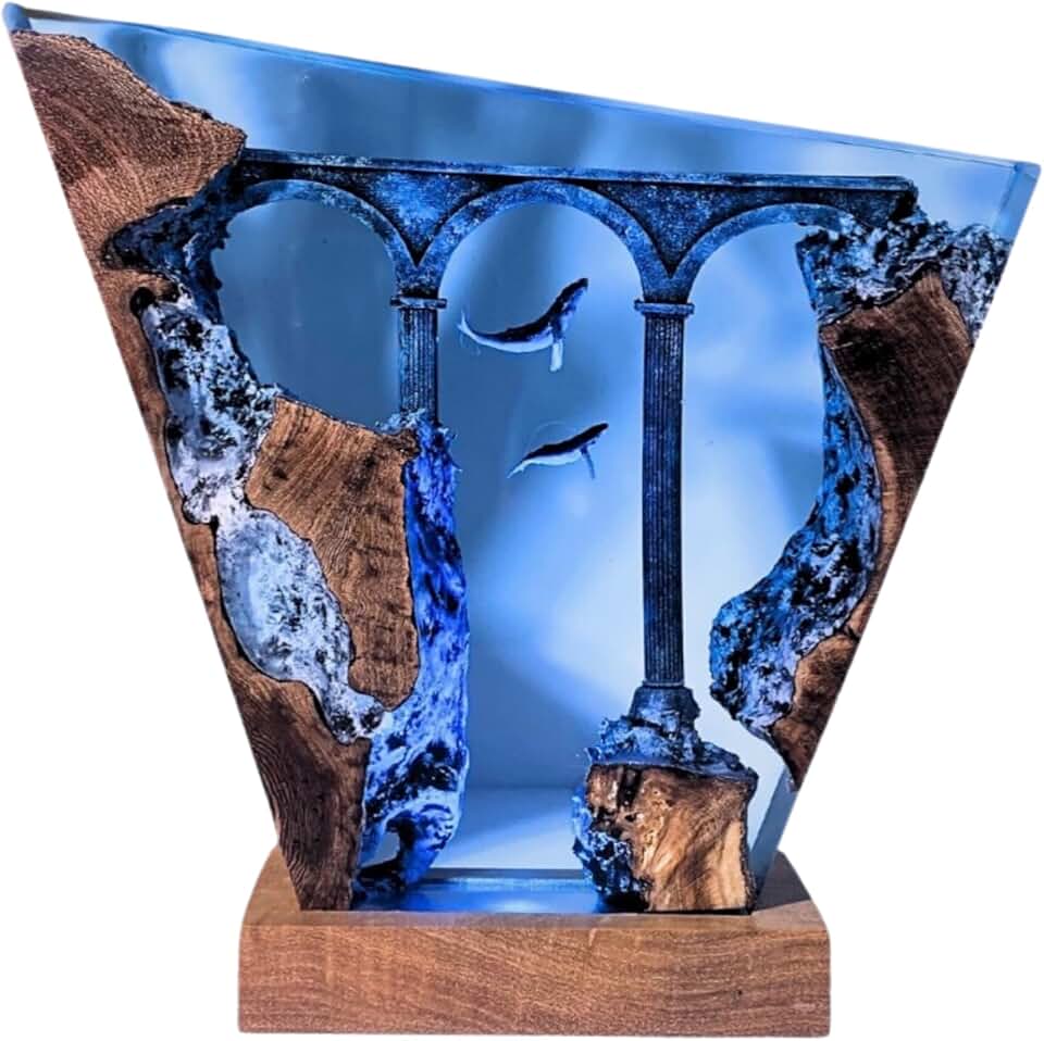 Humpback Whale Night Light, Whale Lamp, Handmade Resin Lamp, Ocean Night Light Large Epoxy Resin, Deep Blue Sea, Epoxy Resin Ocean Lamp, Gift for Him Her (12x6 inch)
