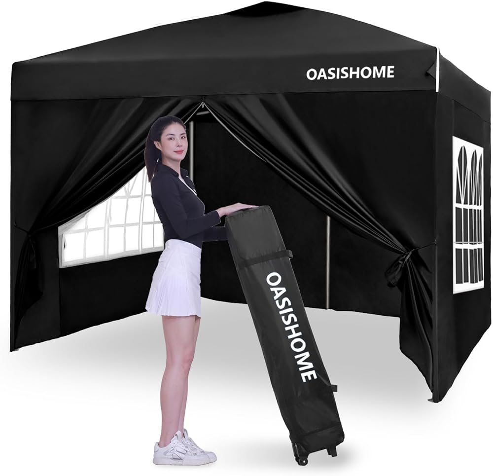 Pop-up Gazebo Instant Portable Canopy Tent 10'x10', with 4 Sidewalls, Windows, Wheeled Bag, for Patio/Outdoor/Wedding Parties and Events (10FTx10FT, Black)