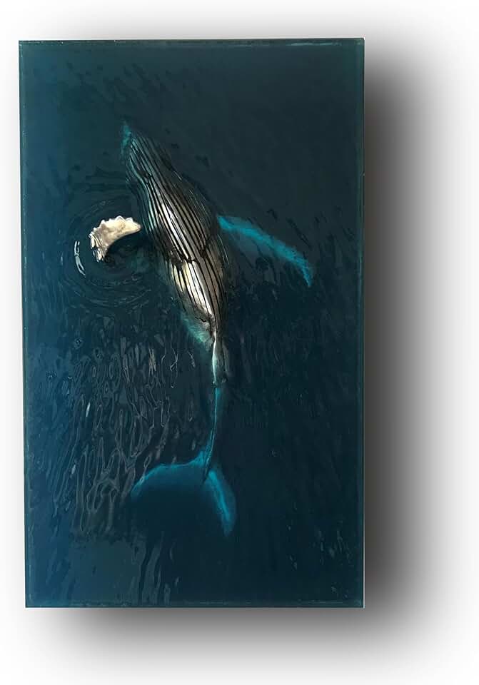 Ocean resin art, Sea Whale, Large whale made of metal, Dancer epoxy resin painting. Deep Blue Sea, Contemporary wall bas-relief with ocean animals, Wall Bas-relief 16.1/9.8/1.5 in.