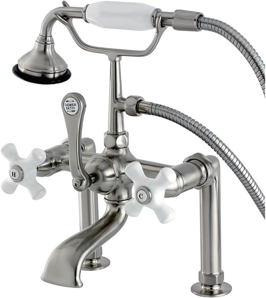 Kingston Brass AE111T8 Aqua Vintage 7" in Spout Reach Deck Mount Clawfoot Tub Faucet, Brushed Nickel
