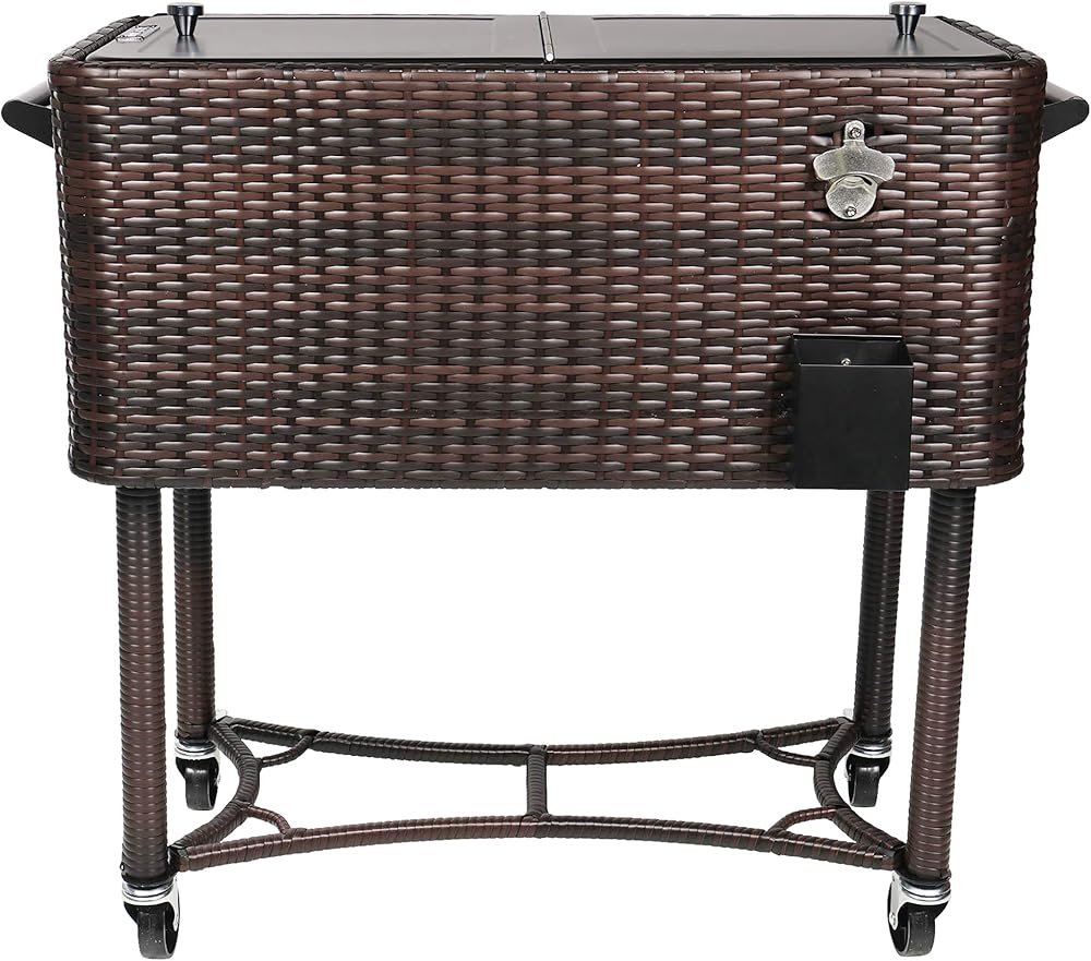 Permasteel 80-Qt Outdoor Patio Cooler with Wheels and Handles, Hand-Woven Wicker