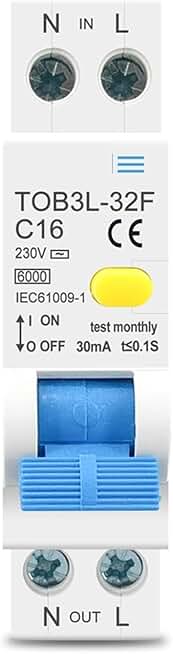 EVURU 18MM 230V 50/60Hz RCBO 1P+N 6KA Residual Current Differential Automatic Circuit Breaker with Over Current Leakage Protection 1Pcs, 16a