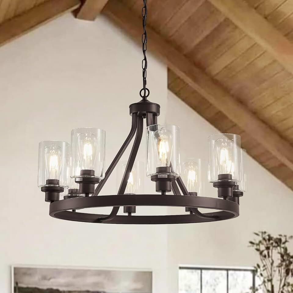 8-Light Farmhose Chandelier for Dining Room Light Fixture Oil Rubbed Bronze Kitchen Pendant Light Round Rustic Ceiling Hanging Lighting with Glass Globes Adjustable Height Metal E26