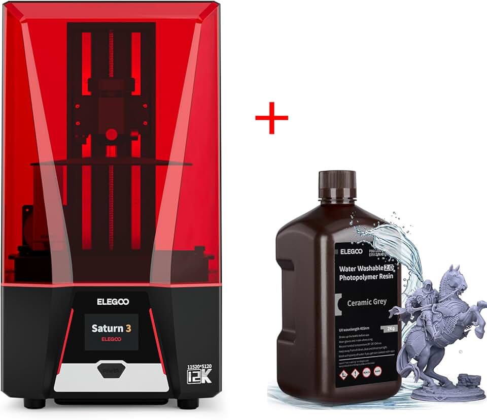 Saturn 3 Resin 3D Printer and ELEGOO Water Washable 3D Printer Resin 2.0 Ceramic Grey 2000g