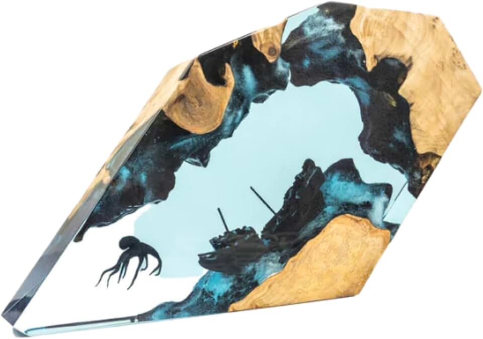 Octopus Shipwreck Night Light Resin Night Light Blue Ocean Miniature, Resin Luminous Decorative Lamp, Ocean Theme Diorama, Shark Lamp, Ocean Lamp (8x10 inch)