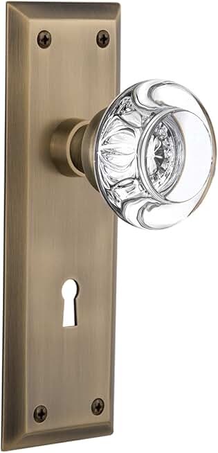 Nostalgic Warehouse 712612, Mortise, Antique Brass New York Plate with Keyhole Round Clear Crystal Glass Knob