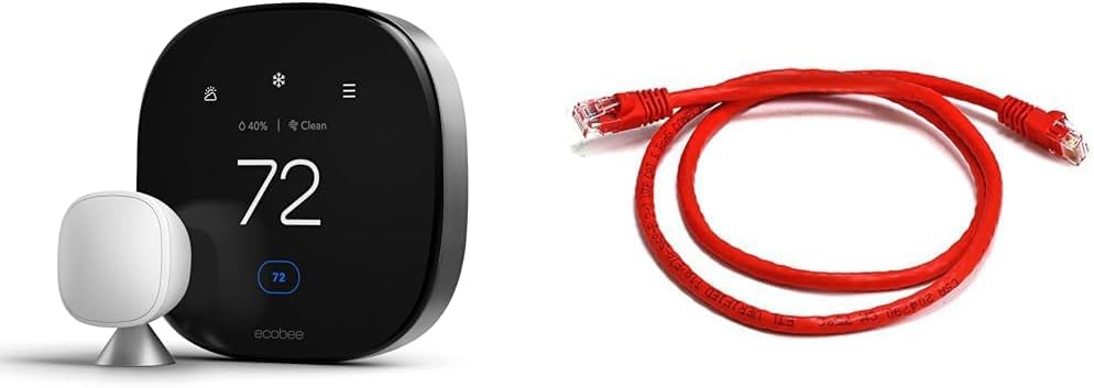 ecobee New Smart Thermostat Premium with Smart Sensor and Air Quality Monitor & Monoprice Cat6 Ethernet Patch Cable - Snagless RJ45, Pure Bare Copper, 550MHz, UTP, 24AWG, 3 Feet