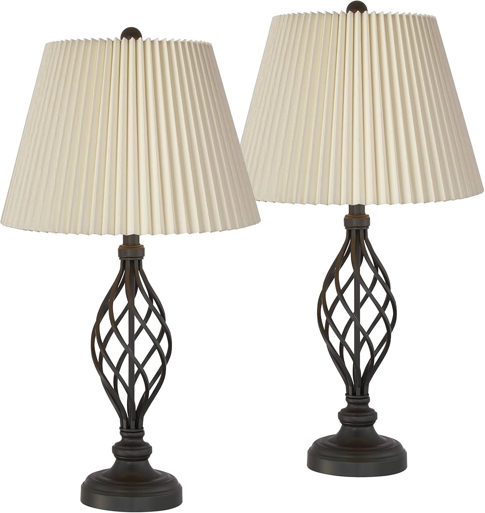 Franklin Iron Works Annie Rustic Farmhouse Table Lamps 28" Tall Set of 2 Bronze Brown Open Scroll Metal Ivory Linen Knife Pleat Shade for Bedroom Living Room Bedside Nightstand House Home Office