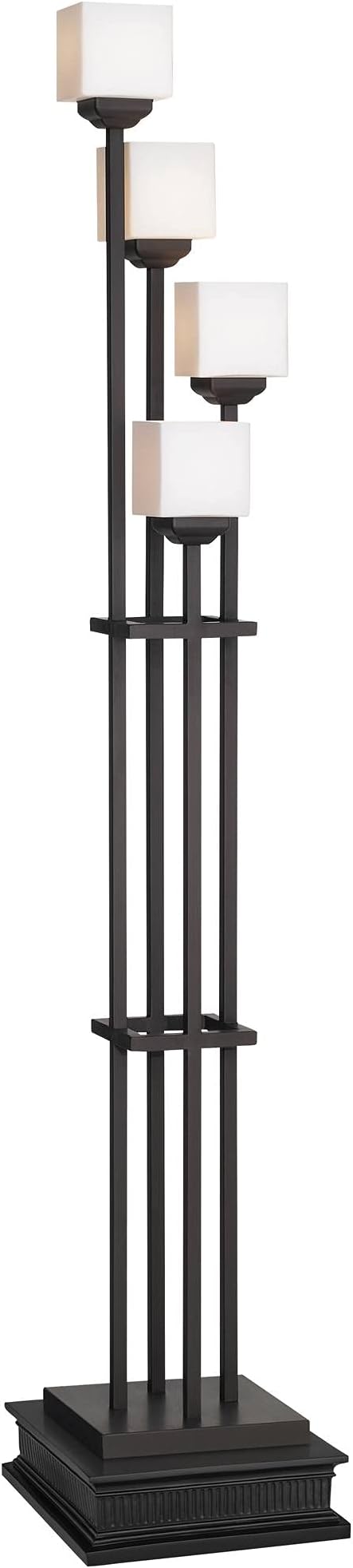 Franklin Iron Works Light Tree Rustic Farmhouse Torchiere Floor Lamp Standing with Riser 76 3/4" Tall Bronze Iron 4-Light Square-Sided White Glass Shades Living Room Reading Bedroom Office House