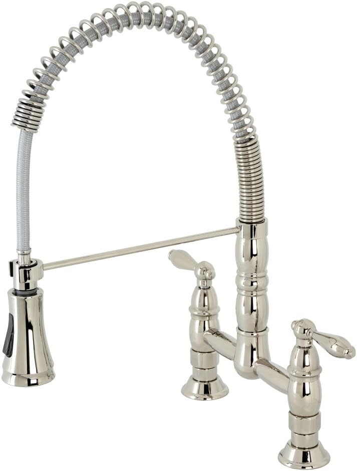 Kingston Brass GS1276AL Heritage Two-Handle Deck-Mount Pull-Down Sprayer Kitchen Faucet, Polished Nickel