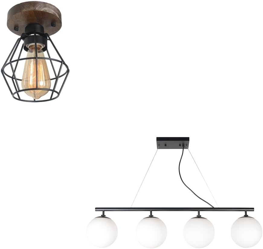 Industrial Cage Ceiling Light and Modern Linear Chandelier Bundle