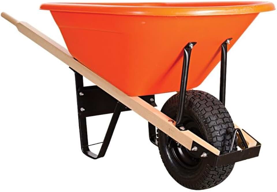 A.M. Leonard 6-Cubic-Foot Poly Tray Wheelbarrows, Wood Handles, Pneumatic Tire