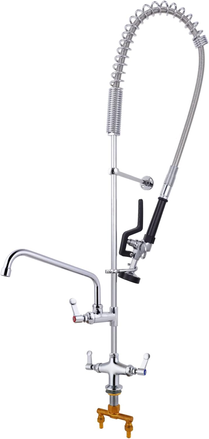 Commercial Faucet with Sprayer Deck Mounted 43 Inch Height Pre-Rinse Faucet Commercial Sink Faucet Ideal for Food Service Commercial Kitchens Restaurant Hotel 12 Inch Swing Spout