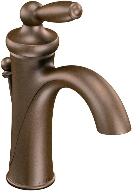 Moen Brantford Oil-Rubbed Bronze One-Handle Traditional Low-Arc Bathroom Faucet with Optional Deckplate and Available Vessel Sink Extension Kit, 6600ORB