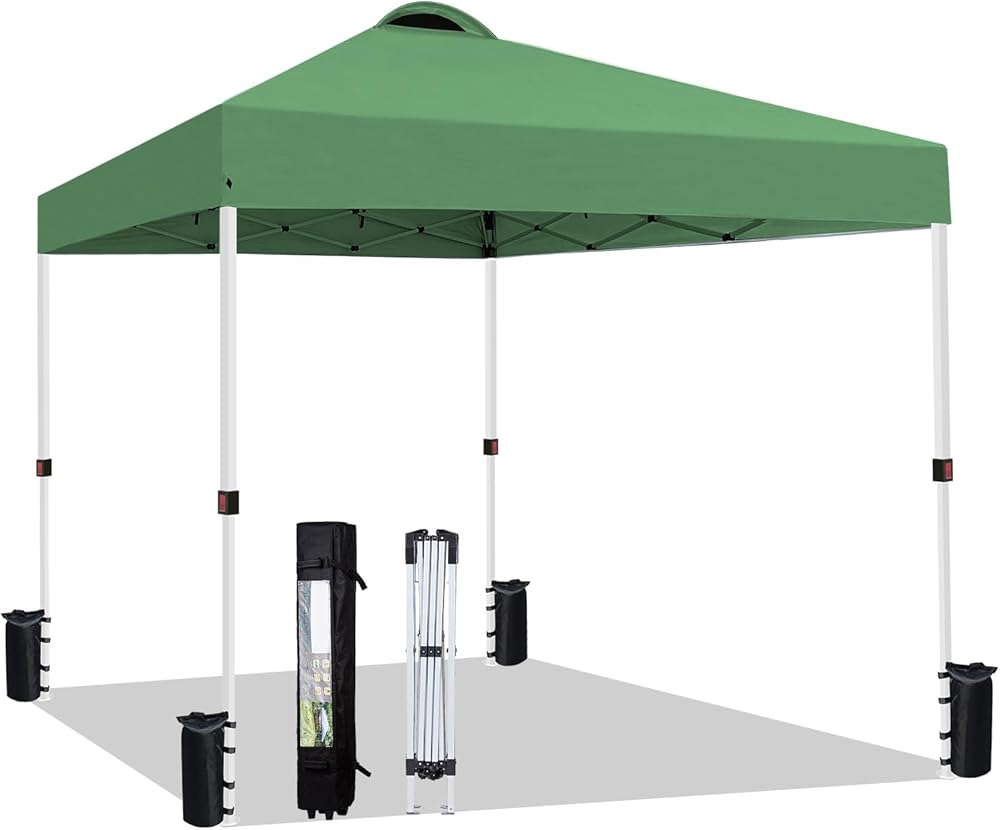 10x10 Pop Up Canopy Tent Party Tent Commercial Instant Canopies Shelter with Heavy Duty Roller Bag, Bonus 4 Sand Bags (Green)