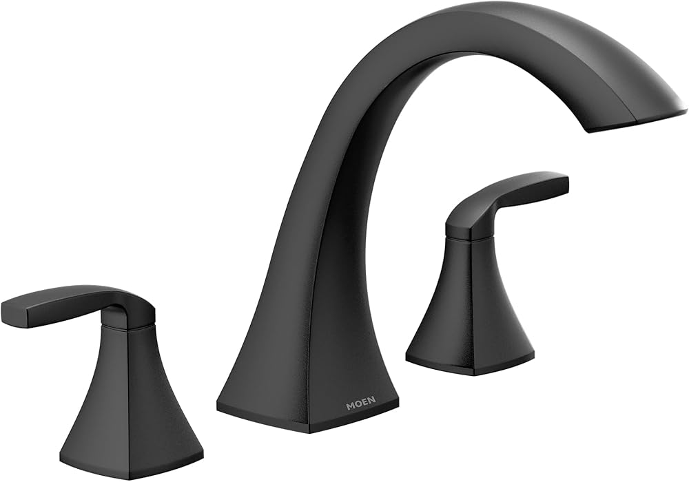 Moen T693BL Voss Two-Handle Deck Mount Roman Tub Faucet Trim Kit, Valve Required, Matte Black