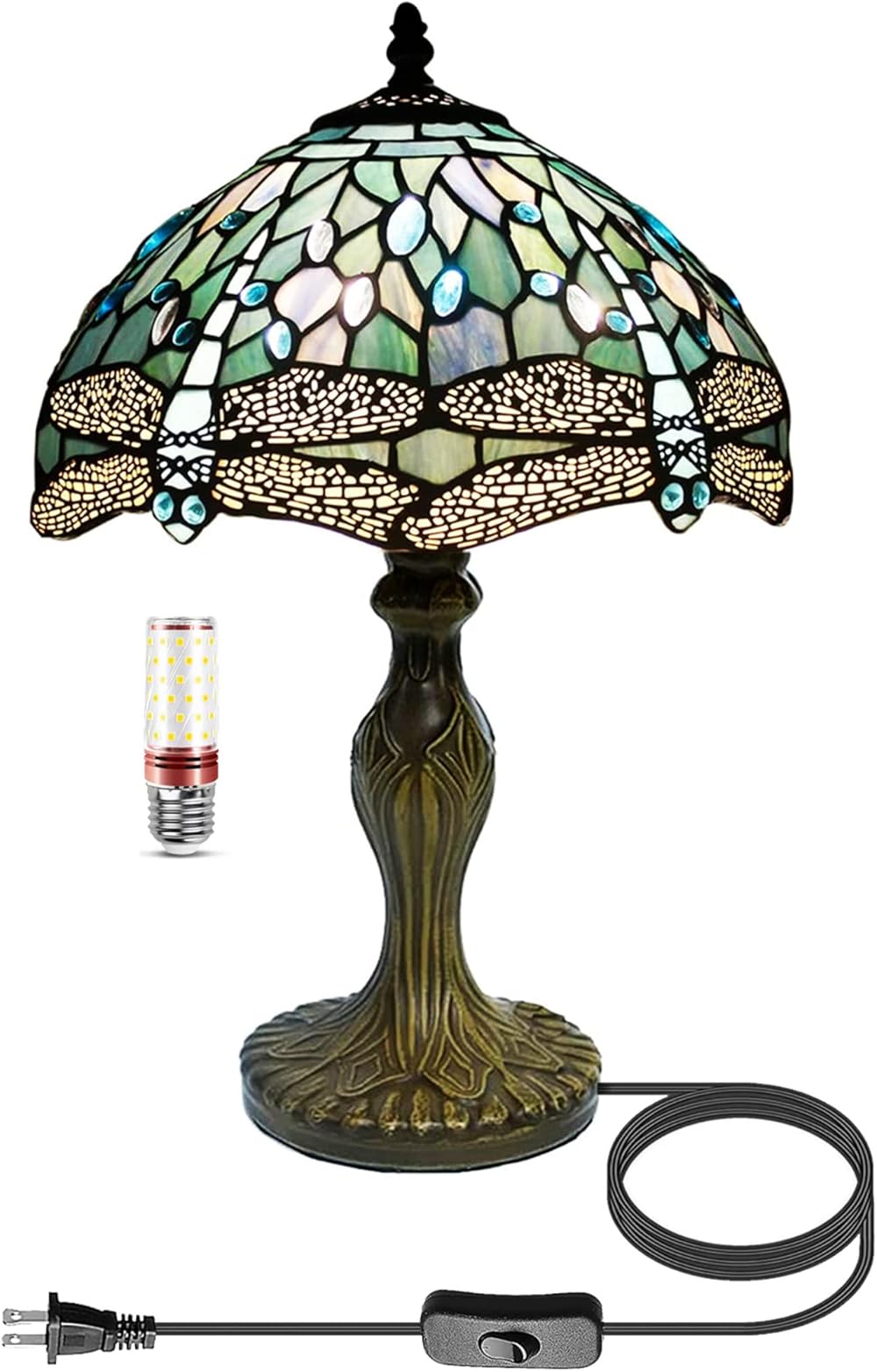 Tiffany Lamp Stained Glass Lamp Dragonfly Blue Bedroom Table Lamp Reading Desk Light for Bedside Living Room Office Dormitory Dining Room Decorate Gift 12x12x18 Include Light Bulb