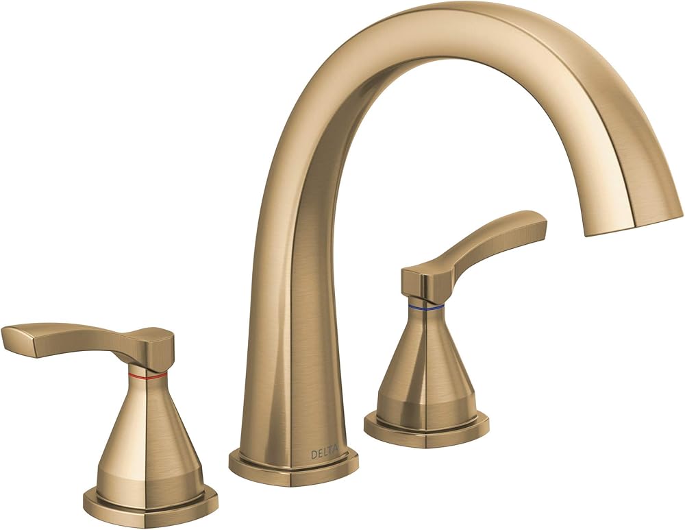 DELTA FAUCET T2777-CZ Three Hole Roman Tub Trim Deck-Mount Without Diverter, Champagne Bronze