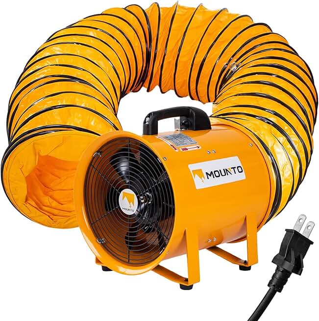 MOUNTO 12-Inch Heavy Duty Cylinder Axial Fan with 25-Foot Vinyl Hose | High-Performance Portable Blower/Exhaust Fan | 2900 CFM Directional Airflow for Crawl Spaces, Attics, Basements