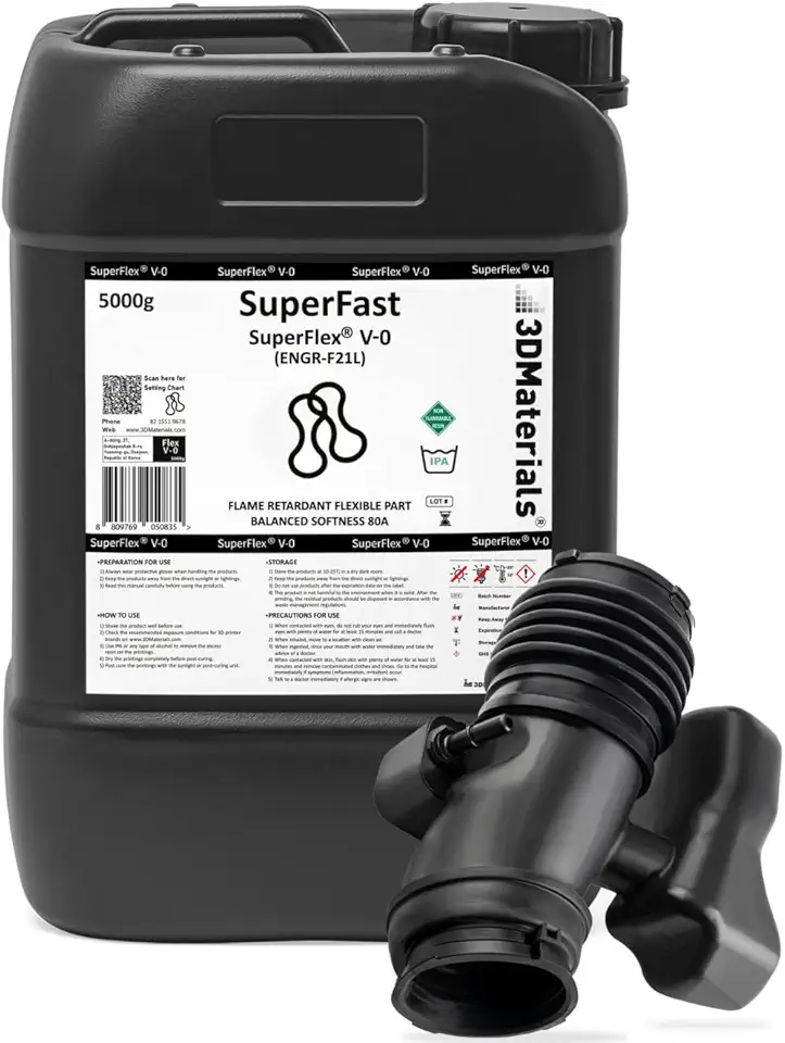 Superflex UL94 V-0, 3D Printer Resin, Flame-Retardant Parts Simulating Flexible Rubber 80A, Made in Korea by 3DMaterials (5000g, Black)