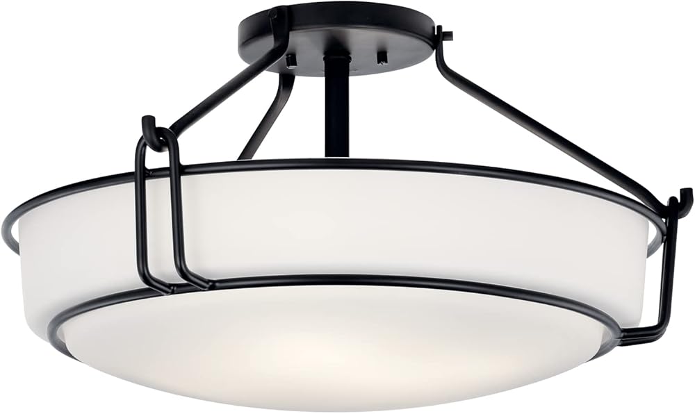 Kichler Alkire 22 inch 4 Light Semi Flush with Satin Etched Cased Opal Glass in Black