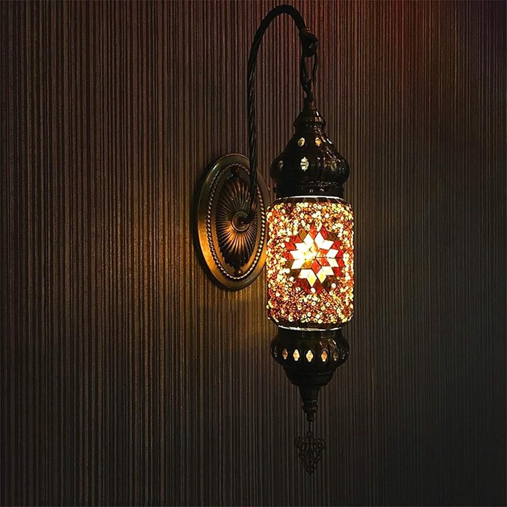 Turkish Mosaic Gooseneck Sconce Wall Lamp Bohemian Lantern Wall Lights Moroccan Handmade Glass Bedside Lamp for Living Room Bedroom Hallway Balcony Cafe Bar (Color : C)