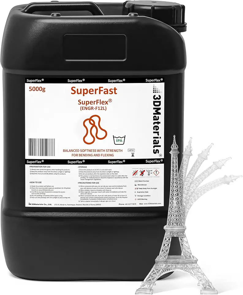 SuperFlex 3D Printer Resin, Softness 80A Simulating Flexible Rubber, Made in Korea by 3DMaterials (5000g, Clear)