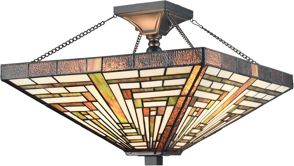Tiffany Style Ceiling Light 3-Light Stained Glass Semi Flush Mount Ceiling Light Vintage Tiffany Ceiling Light Fixture for Bedroom Hallway Foyer Living Room